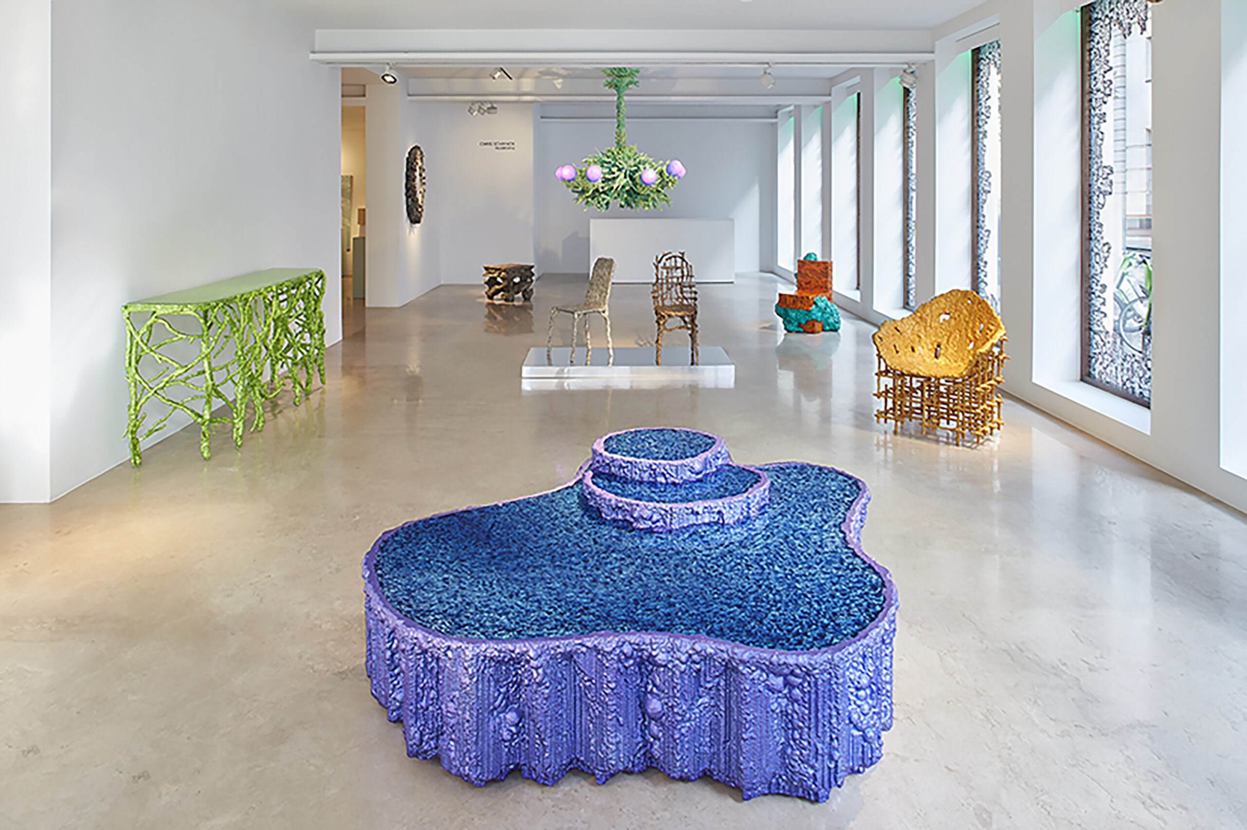 Chris Schanck born in Pittsburgh, in 1975 first studied fine art at the School of Visual Arts in New York and then pursued Design at Cranbrook. The Detroit-based artist’s work plays in the liminal space between art and design. The fantastical pieces he now produces can be judged on their narrative, or their function. Or indeed, on an intriguing material complexity, since Schanck takes multiple elements of little or no value – cheap plywood, scavenged sticks – and both disguises and transforms them with luscious coatings of resin or aluminium foil. Every piece contains more than one story.
